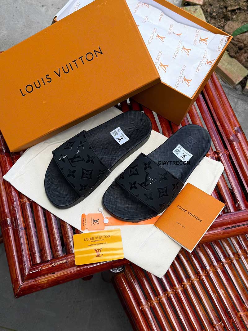 Dép LV Waterfront Monogram Vân Dập Đen (Hàng 1:1)